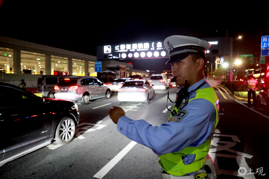 申虹路、申贵路等重点沿线设置40余个勤务岗位,以“警用摩托巡逻+固定岗位值守”模式,动态引导网约车、私家车前往绍虹路等沿线“即停即走”区域上下客,减少因随意停车引发的拥堵。