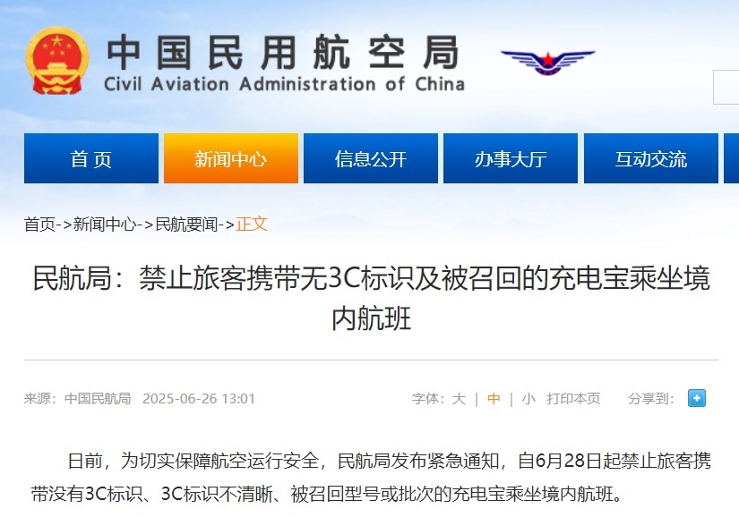 需要注意的是,可以登机的充电宝不仅要带有3C标识,而且要符合容量规定。