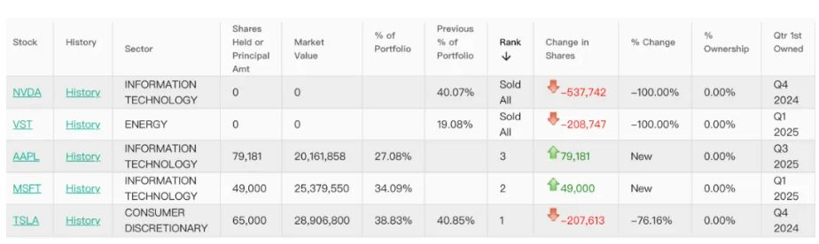 彼得·蒂尔旗下对冲基金Thiel Macro日前披露的2025年第三季度持股报告(13F)显示,截至今年9月底,该基金已清仓所持有的全部53.77万股英伟达股票,这批股票原本约占该基金股票持仓总量的40%。截至9月底,该机构股票持仓规模从6月底的2.12亿美元降至约7400万美元。